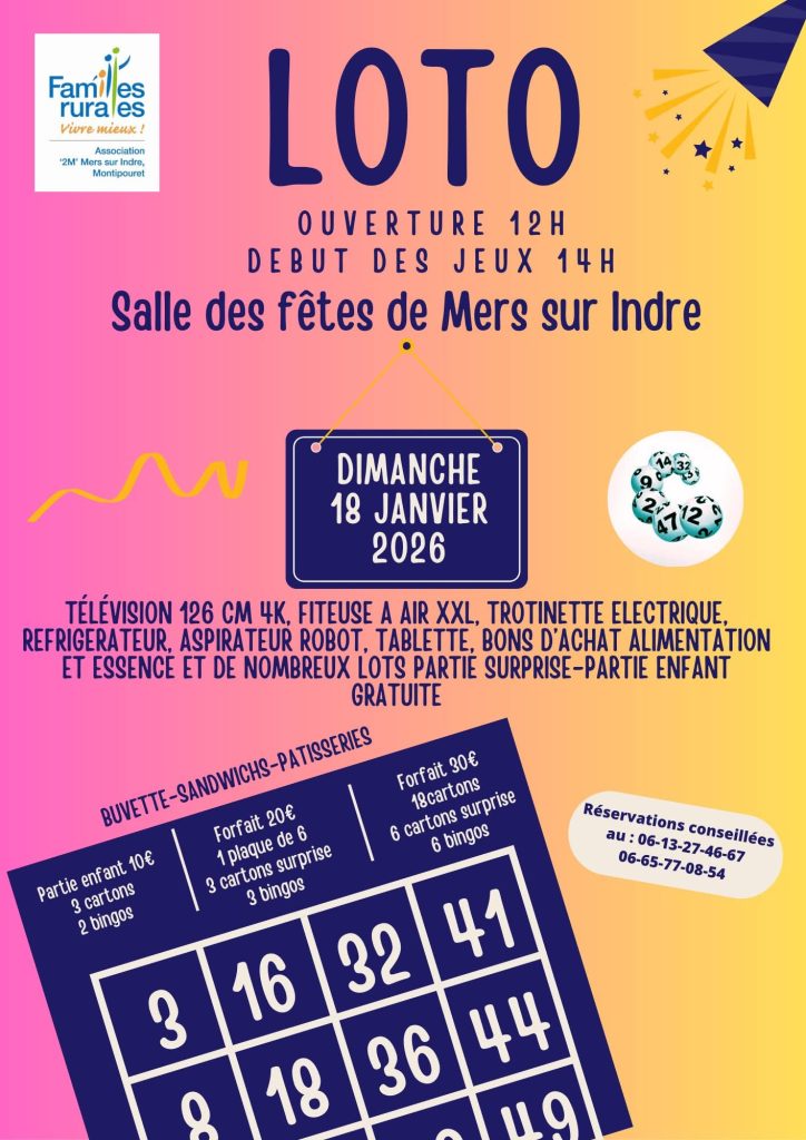 LOTO Familles Rurales 18 Janvier 2026 ! Venez nombreux !
