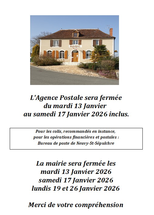 Fermeture Mairie et Agence postale Janvier 2026